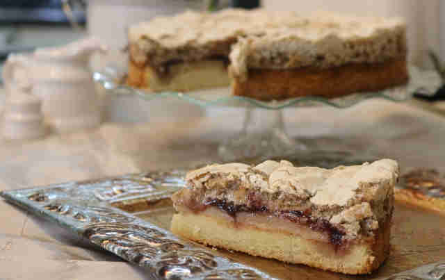 עוגת שכבות נפלאה המשלבת בין בצק ברטון, מרציפן, מרקחת דובדבנים (תמיד בעונה...) ומקצפת עם אגוזים. כל מרכיב בעל קסם אישי משל עצמו, והשילוב - ממכר.