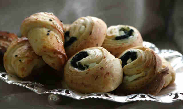 10. מברישים את הקרואסונים בעדינות רבה מאוד בביצה טרופה. מקשטים בשומשום, קצח, פלפל גרוס, זרעונים למיניהם או כל קישוט מתאים אחר.
