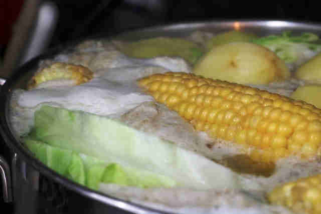 בזמן הבישול מרתיחים מים בקומקום, ולפני הוספת הקבוצה הבאה מוסיפים עוד מים לסיר.