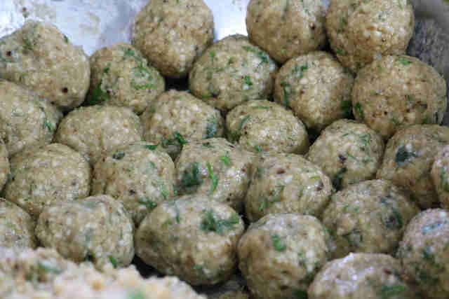 4. בינתיים מכינים מתערובת הקניידלך כדורים קטנים (בגודל של עגבניות שרי גדולות).
