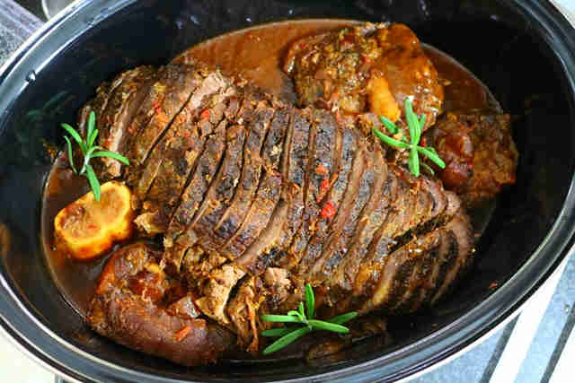 10. כעבור 3 עד 4 שעות סה"כ מתחילת הצליה בתנור (תלוי בגודל הנתח) מוציאים את הצלי מהתנור, משקים בפעם האחרונה, ונותנים לו להתקרר לטמפרטורת החדר.